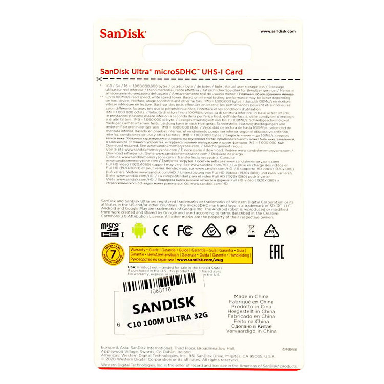 SanDisk Ultra UHS-I 32GB 100MB/s MicroSDHC Memory card